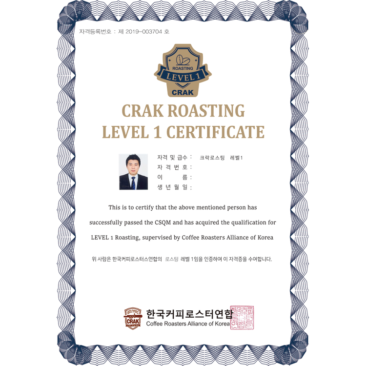 - CRAK 로스팅 레벨1 자격증 응시를 위한 결제창입니다.
